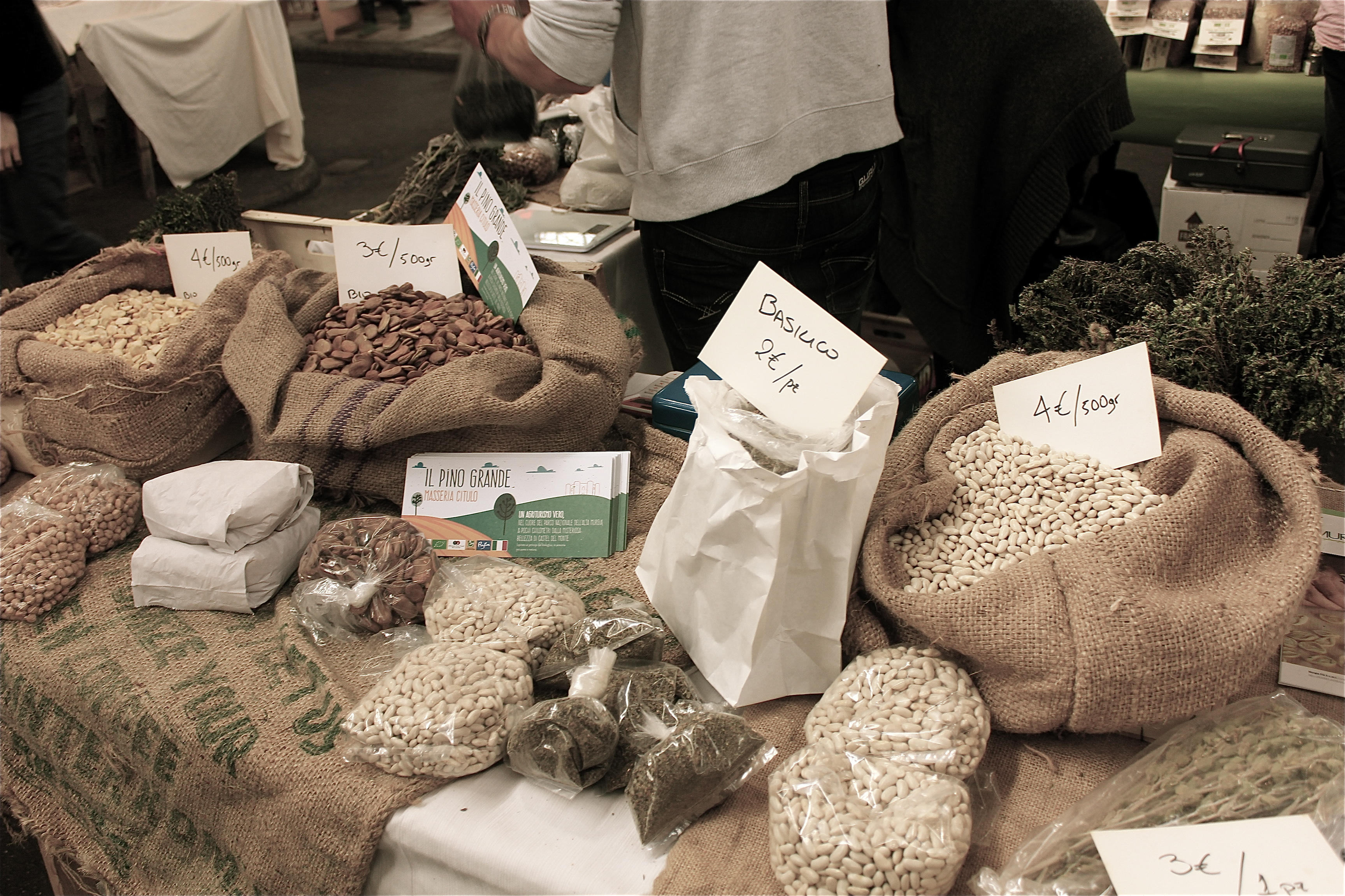 Zu einer richtigen Feier gehören eigentlich Gäste. Das dachte sich auch die Markthalle IX in Berlin und lud deshalb zur kleinen Feier des Internationalen Jahres der Hülsenfrüchte am 9. April zwei ganz besondere Gäste aus Italien ein: Sofia Molfeta aus Apulien & Alessandro Angelini aus Umbrien. Die wiederum brachten Herrliches aus ihrer Heimat mit: schwarze Kichererbsen, Wilderbsen, Berglinsen und wunderschön gemusterte Bohnen.