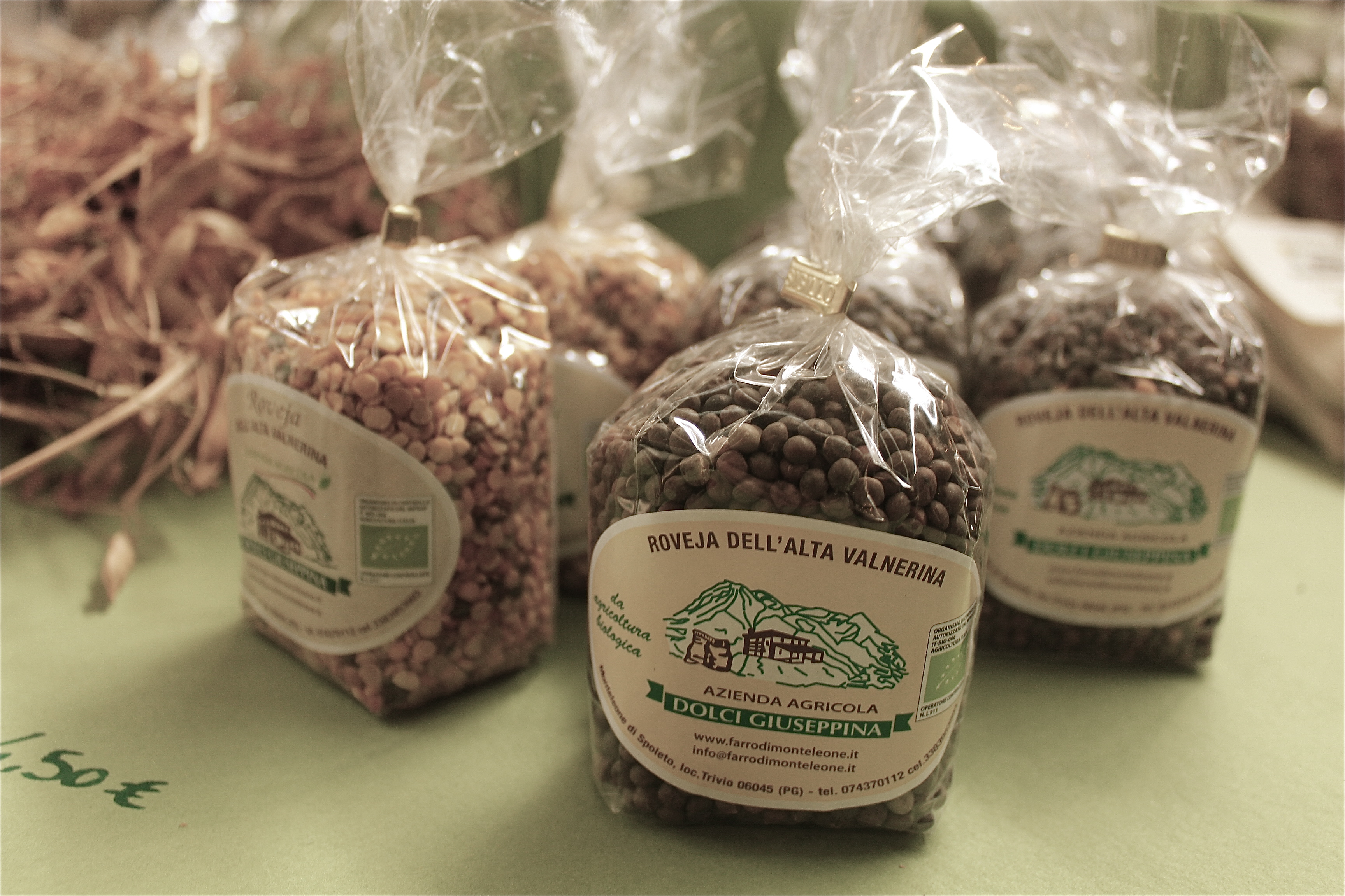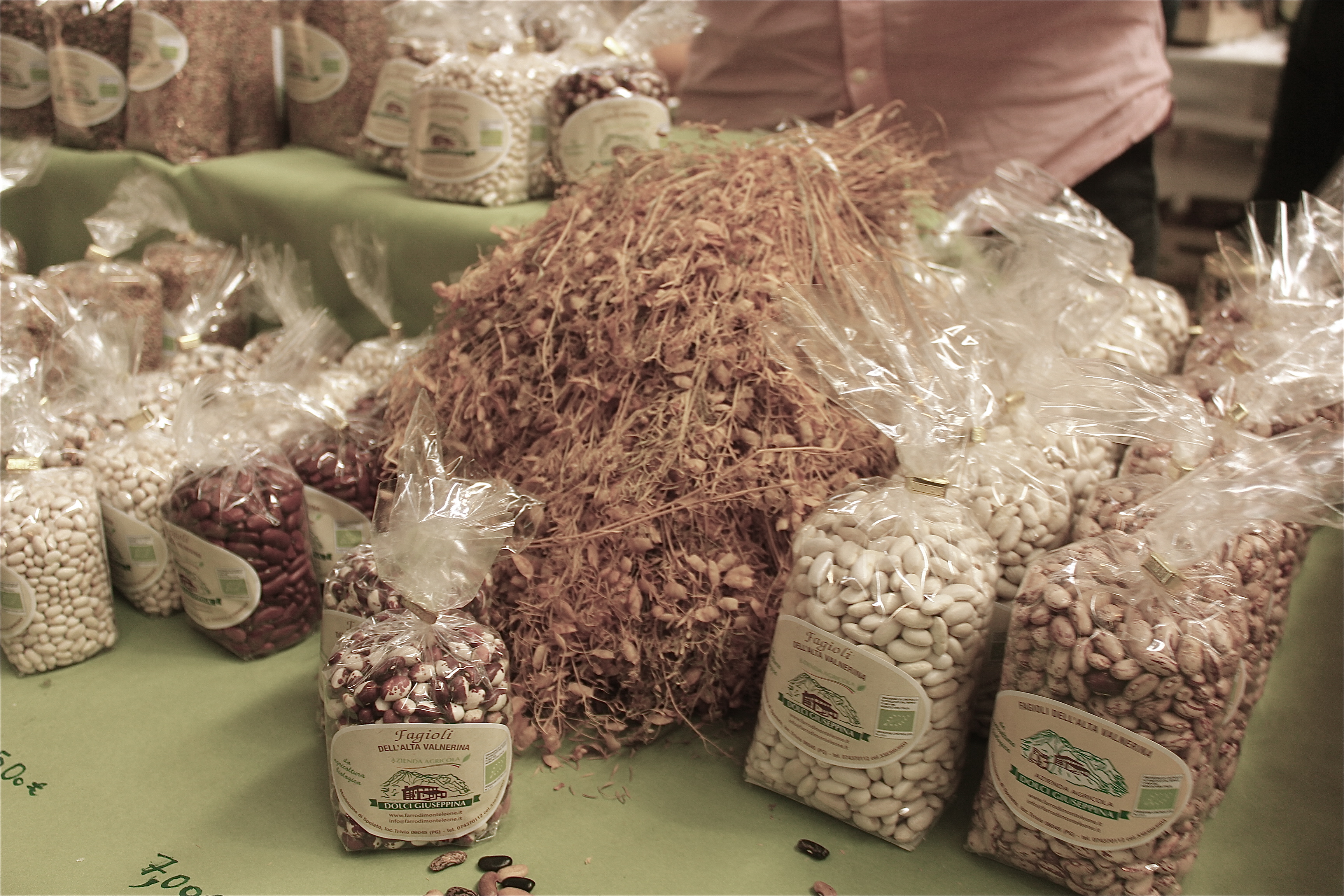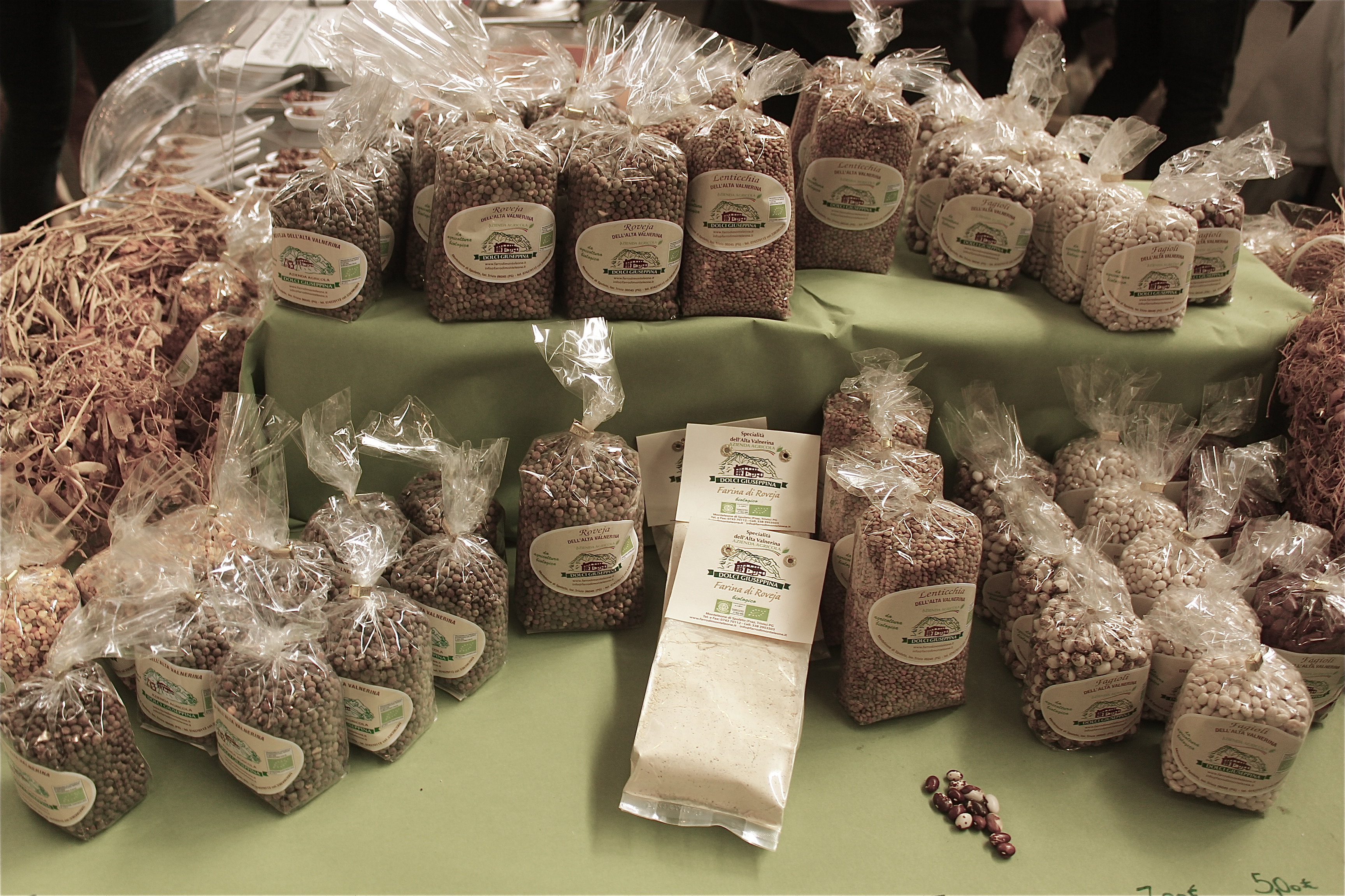 Alessandro Angelini hingegen stammt aus einer Familie, die schon seit vielen Generationen in den Bergen Umbriens Wilderbsen, Berglinsen und die unterschiedlichsten Bohnen anbaut. Insgesamt sind es über 30 verschiedene alte und heimische Hülsenfruchtsorten sowie Dinkel, die der kleine Familienbetrieb – bestehend aus Alessando, seinen Eltern sowie Bruder und Schwester – in 1000 m Höhe auf traditionelle Weise bewirtschaftet. Dabei ist der Mondkalender genauso wichtig wie das über Generationen angesammelte Wissen, zum Beispiel zum perfekten Zeitpunkt der Aussaat. So verrät mir Alessandro, dass der Boden bei der Aussaat unbedingt trocknen sein muss, denn sonst wird der Mikroorganismus des Bodens zerstört. Irgendwie meine ich beim Probieren der Wilderbse dieses Unbändige und Ungebrochene raus zu schmecken. Die Wilderbse ist herrlich aromatisch und bissfest, behält ihre dunkle Farbe nach dem Kochen und sticht mit einem ganz eigenen Geschmack heraus. Wunderbar ist sie in der Kombination mit einem guten Olivenöl. Erlesene Restaurants rund um Perugia führen sie auf ihrer Speisekarte. Und die getrockneten Hülsenfrüchte gibt es eigentlich nur auf dem lokalen Markt bei Alessandros Mutter und Schwester zu kaufen. Ein „Uneigentlich“ gibt es zum Glück aber auch.