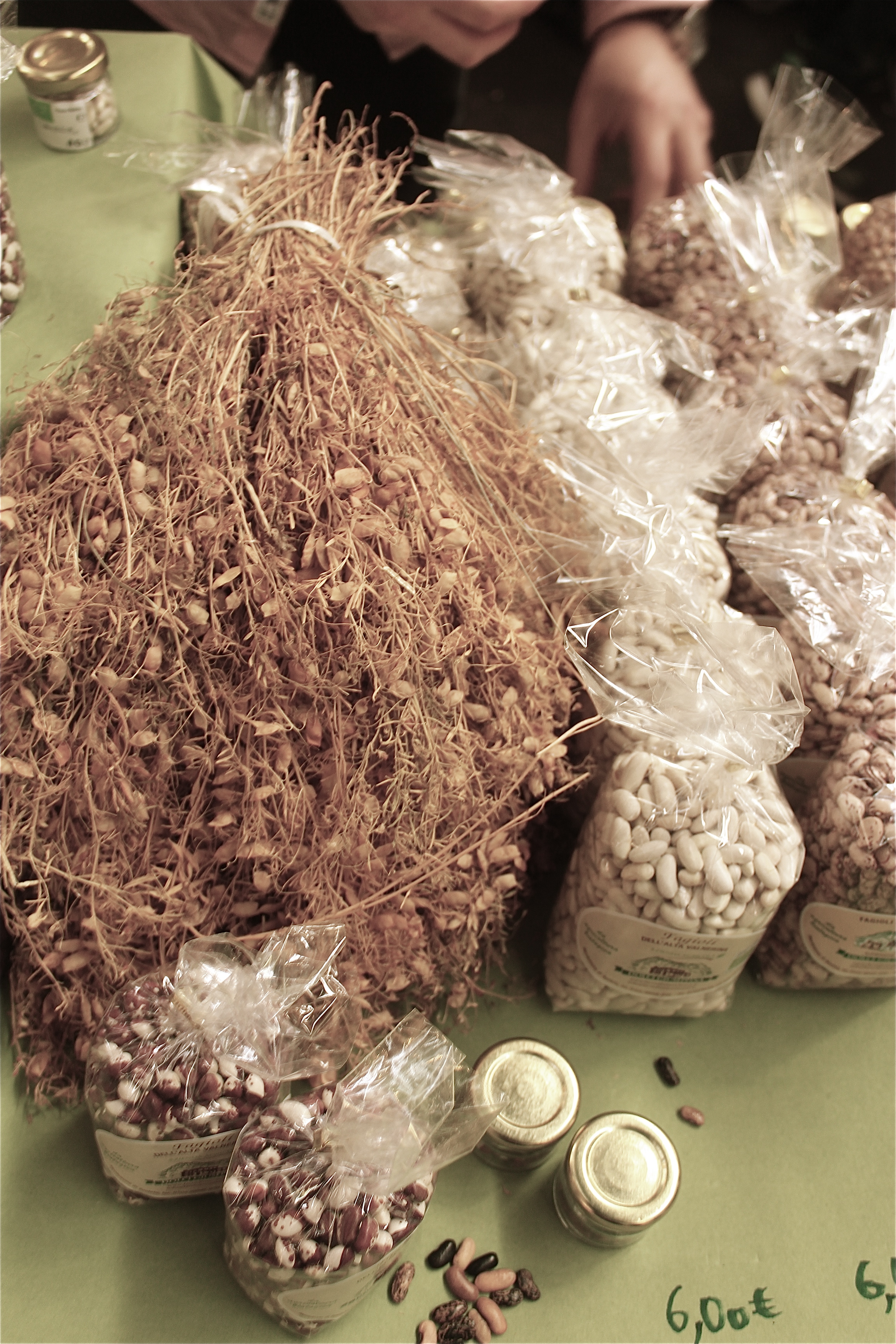 Und das führt uns zurück zum guten Olivenöl. Indirekt hat nämlich das Olivenöl Alessando und Sofia und ihre einzigartigen Hülsenfrüchten nach Berlin gebracht; direkt war es Conrad Bölicke. Bölicke ist Kopf und Herz von arteFakt, der Olivenölkampagne, die bestes Olivenöl von ausgewählten, traditionellen Olivenbauernfamilien aus Italien, Spanien und Griechenland ohne Zwischenhandel nach Deutschland bringt. Einer der Olivenbauern erzählte Bölicke von Alessandros Wilderbsen und Berglinsen, und da Bölicke ein Mann der Tat ist, machte er sich kurzerhand in die Berge von Umbrien und suchte die außergewöhnlichen Hülsenfrüchte auf. Zu lecker, um sie zu verschweigen, befand Bölicke und nahm sie zusammen mit der apulischen „Ceci Neri“ in das Sortiment von arteFakt auf. Wer alle drei vorher probieren will, könnte das am 30.4. + 1.5. auf dem Olivenöl-Abholfest in Wilstedt bei Bremen tun. Zum jährlichen Abholfest kommen nicht nur die frisch gepressten Olivenöle, sondern auch ihre dazugehörigen Olivenbauern aus Italien, Spanien und Griechenland angereist. Dazu gesellen sich um die 20.000 Besucher jedes Jahr und machen es zum einer fröhlichen Spektakel, inklusive Hülsenfrucht-Probieren.